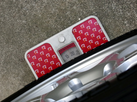 ③せっかくなんで 重量計測。交換前の 純正鉄ホイール+ブリジストン デューラー AT 175サイズは 20kg