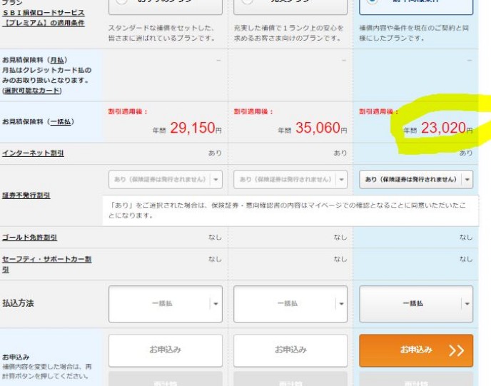今回も昨年と同条件で 無事故で等級が上がって、年間走行距離が 1段階少なくなって・・と保険料が安くなりそうなもんですが、23020円となり 1300円アップでした(昨年は 21720円)