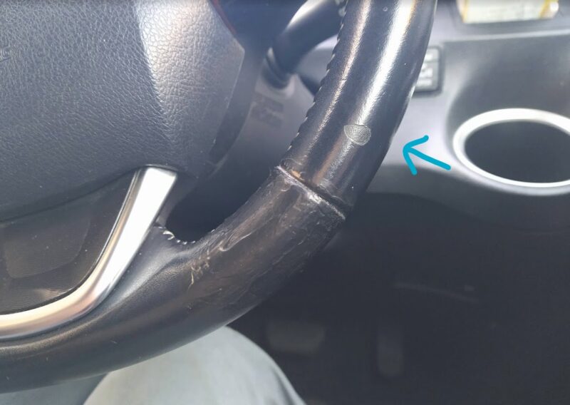 8年半という期間を 屋外駐車の過酷な環境だったわりには 直前までは良い状態をキープできていた方だと思う ちゃんとした手入れはしていなくて たまにウェットティッシュで拭くのと クルマの中でハンドクリームを塗っていたので その成分が少しはステアリングを潤していたのかもしれません