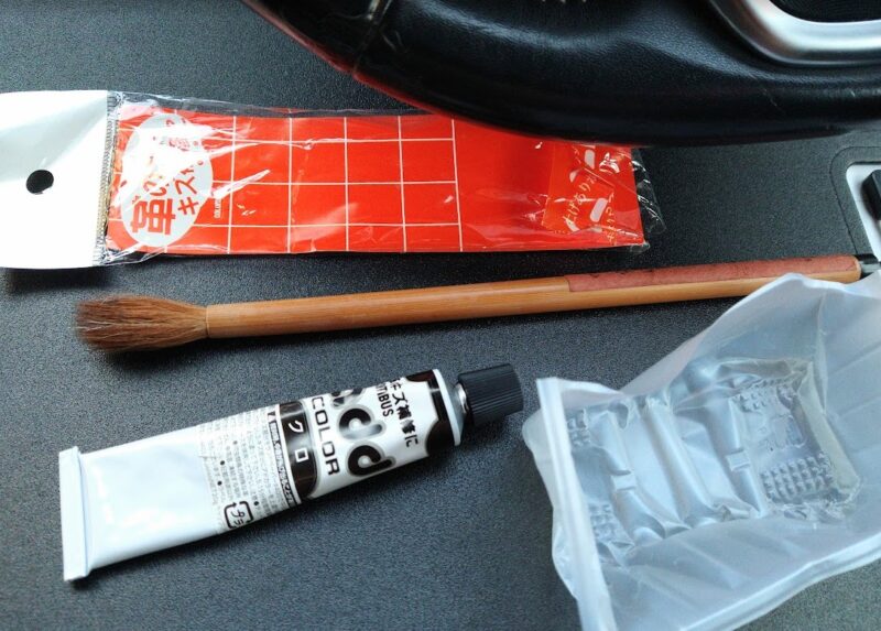 剥がれたところの下地処理が相変わらず難しいです。 すこしでも強めにサンドペーパー当てると穴が広がるので、かなりソフトに下地作りする必要がある。 あとはパーツクリーナーで脱脂、アドカラーをヘラで塗って完了
