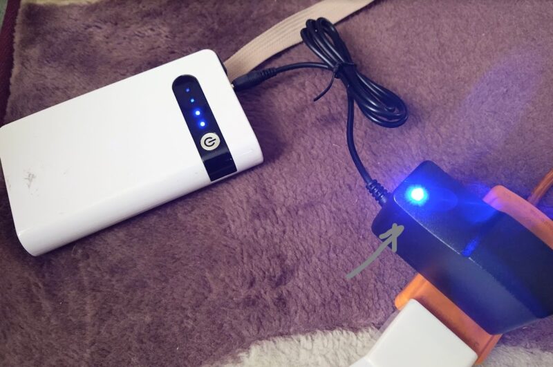 車のシガーソケットで充電。 1時間ほどの走行中に充電しておくと 2つ点灯から4つ点灯までチャージできました。 また長期保管になりそうなので 8割充電くらいでよい気がするので これで充電完了にします。